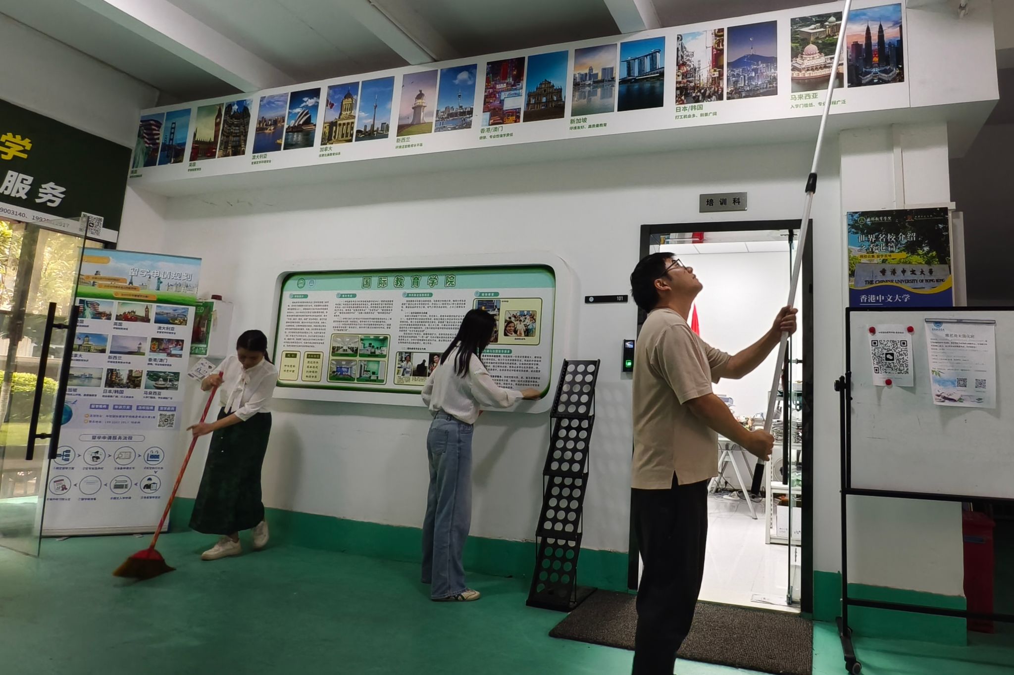 风雨过后,温暖延续。为进一步改善雅思考场环境,给广大考生提供更舒适、更优质的考试服务,学院教工党员们持续发力、主动作为,积极投身于教学环境美化工作中。大家利用休息时间,清理校园角落杂物、擦拭考试设施、整理考场周边环境,不放过任何一个细节;有的党员主动承担绿植养护工作,为校园增添生机与活力;有的党员认真检查考场设备,确保每一处设施都正常运转。从防汛抢险到环境美化,从危急时刻的冲锋在前到日常工作的默默坚守,教工党员们始终以高标准严格要求自己,把服务考生、服务校园的初心落到实处,用点滴行动传递温暖与力量。